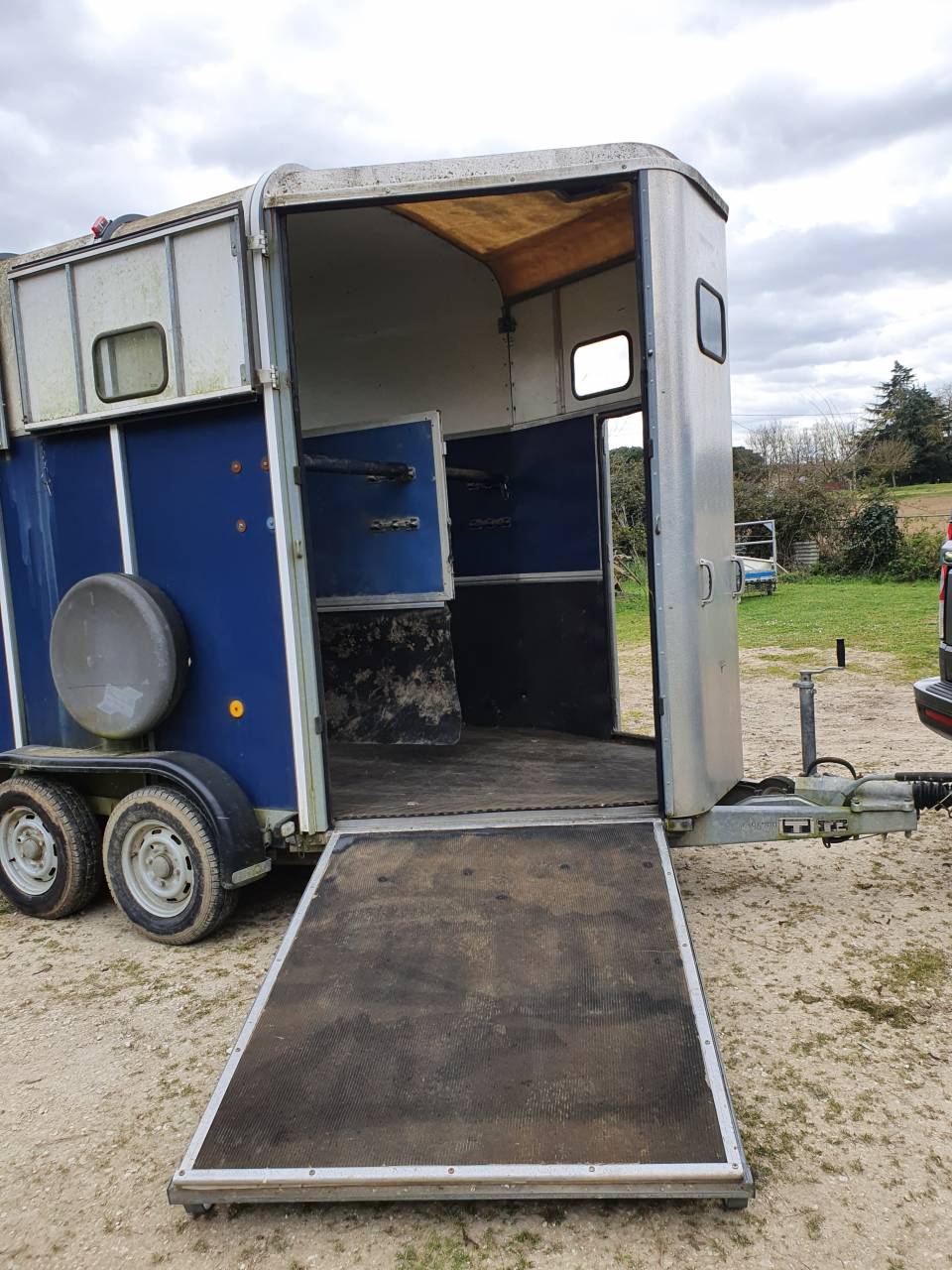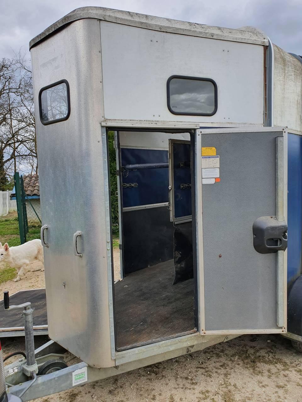 Van IFOR WILLIAMS de 2005 adapté aux chevaux de grande taille équipé d’un pont arrière, d’une sortie chevaux avant droite et d’une porte avant gauche. Le van comporte des fenètres avant, des bat-flancs et une tête d’attelage équipé d’un antivol avec clef.